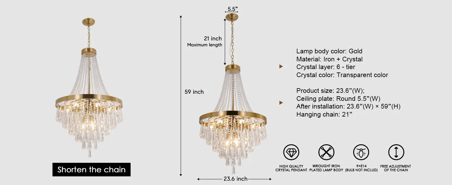 Bulb Type: Requires 9 x E14 base bulbs, Max 60W each (bulbs not included)