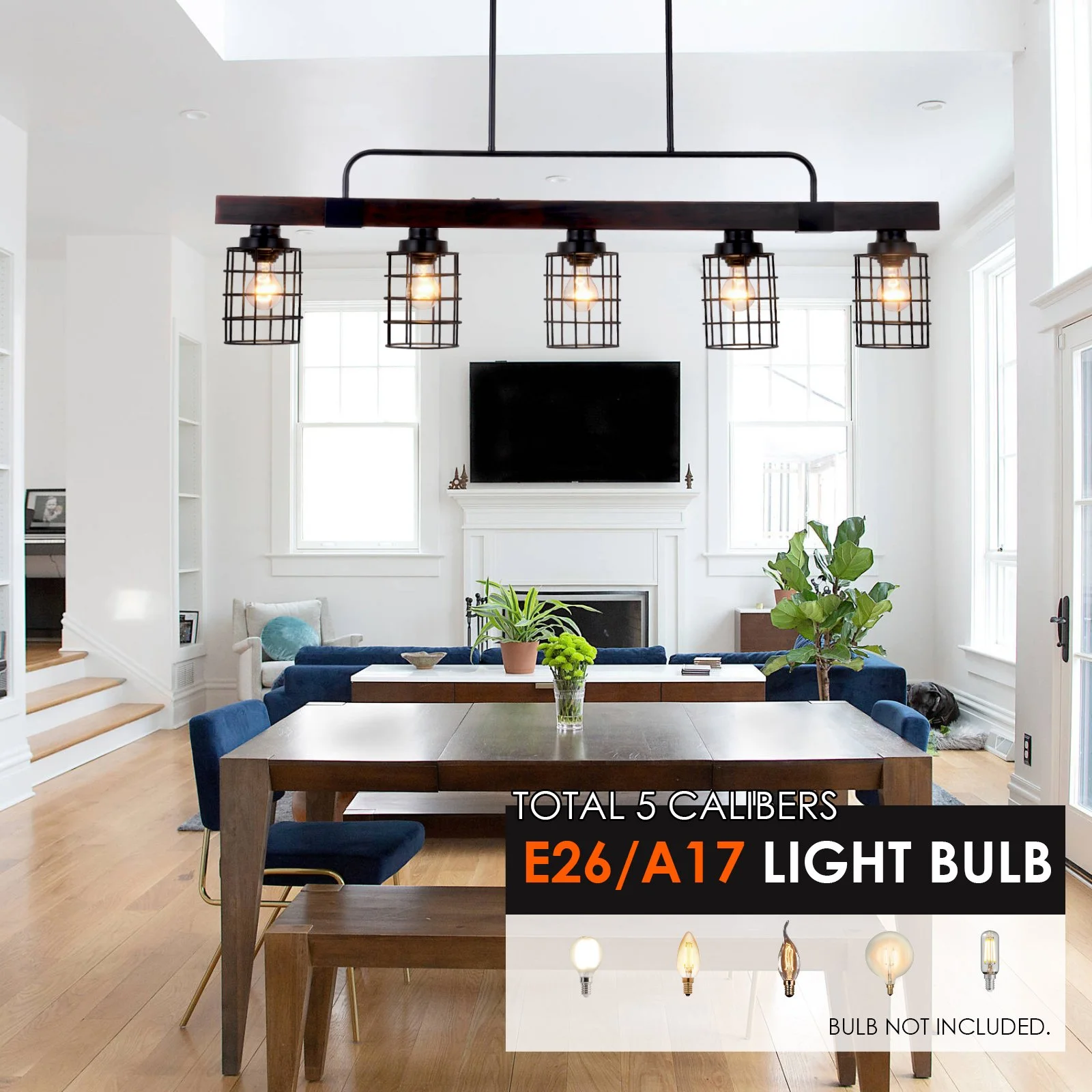 Sockets: 5*E26 bulb sockets.(Bulbs not included).